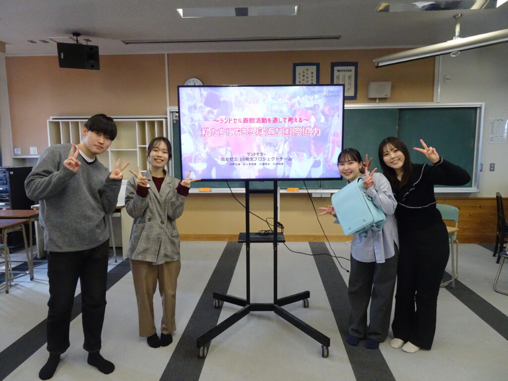 2日目のお昼からは高安ゼミとして「国際開発シンポジウム」を開催し、国際協力NGOジョイセフから講師を招き「思い出のランドセルギフト」のご講演をしていただきました。本ゼミのランドセラーチームもこれに協賛するかたちでプロジェクト活動を行っております。アフガニスタンの現状やどのようなことに支援を有しているのか、そして正しい性教育のあり方などを教えていただきました。
