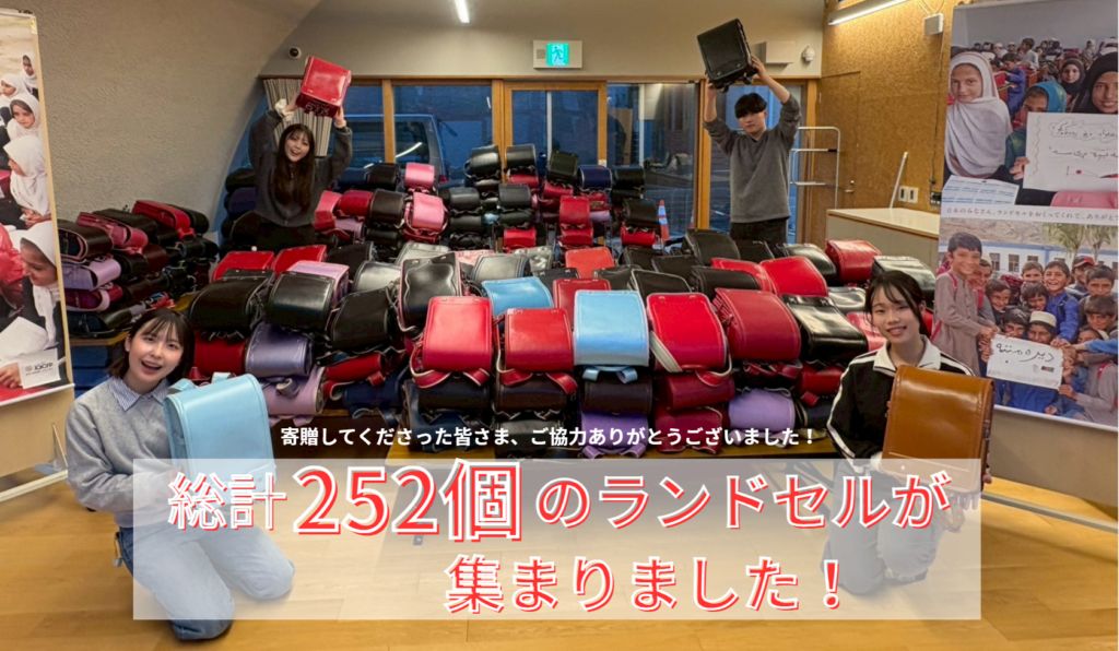 昨年11月8.9日に実施したランドセル回収イベントでは、皆様のご協力により、252個ものランドセルが集まりました。